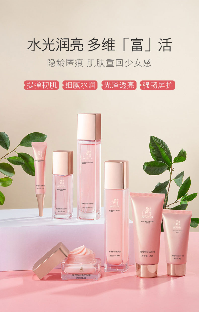 加工定制黛美雅诗玫瑰保湿护肤品套盒oem贴牌滋润保湿补水化妆品套装odm代加工